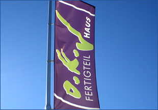 Digitaldruck auf Polystrol-Fahne (PVC, mit Oesen) und viele weitere ...